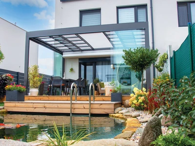 Pergola Venti by Alukov is an intelligent bioclimatic pergola of the new generation with a sliding roof, shading and side blinds. It offers year-round comfort, light and temperature regulation, and elegant design for modern outdoor living.