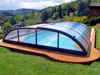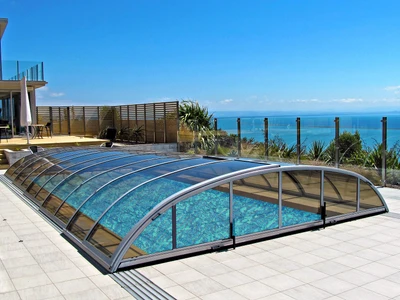 The ELEGANT NEO™ pool enclosure by Alukov offers an elegant shape and low profile, ensuring full protection of your pool. Thanks to the optimal curve, it allows comfortable swimming even in adverse weather, without disturbing the look of your garden.