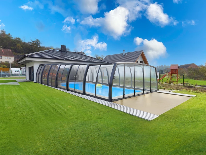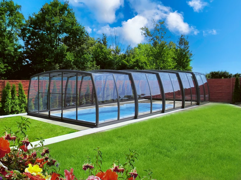 The enclosure significantly simplifies pool maintenance and allows you to extend the swimming season by several months. It protects the water from debris, helps retain its temperature, and reduces maintenance requirements. It also increases safety—especially in households with children or pets.