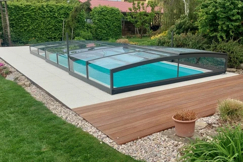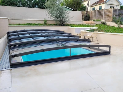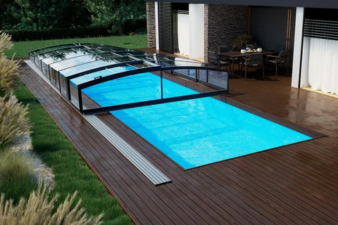 The PARADE enclosure is ideal for pool owners looking for an efficient and aesthetic pool protection solution. Its telescopic structure allows for easy opening and closing, making access to the pool and its maintenance more convenient. Transparent panels ensure constant visual contact with the water surface, while safety features prevent unauthorized opening and adverse weather effects. Thanks to a rail track on only one side, an elegant appearance is achieved along with easy access from the other sides. This enclosure not only extends the swimming season but also reduces maintenance and water heating costs, delivering long-term savings.