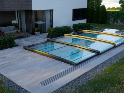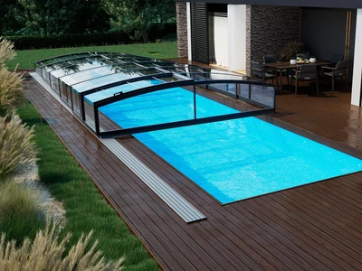 Alukov offers a wide range of low enclosure models designed with a focus on modern design, user-friendly operation, and long-lasting durability. Each model allows for smooth segment sliding, ensuring easy access to the pool without the need to uncover the entire structure. Thanks to high-quality materials such as clear or cellular polycarbonate and anodized aluminum profiles, these enclosures offer strong resistance to weather conditions and UV radiation. A low pool enclosure provides comfort and protection without disrupting the garden view or surrounding architecture.